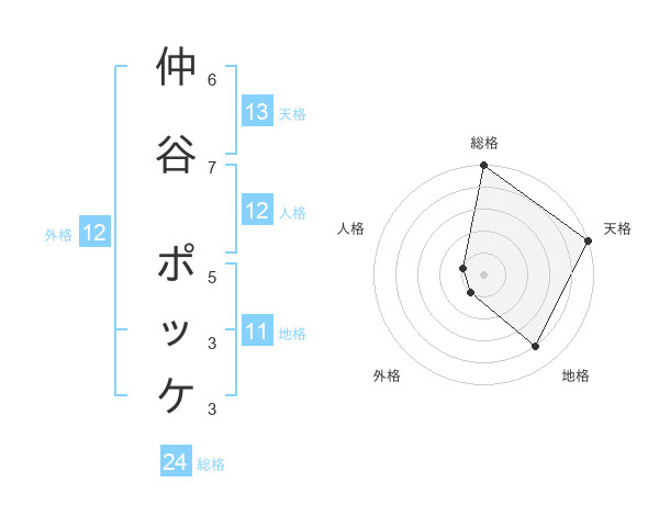 仲谷 ポッケさんの天格は13画の5点!