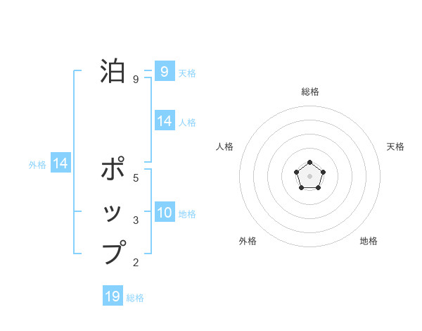 泊 ポップさんの総格は19画の1点!