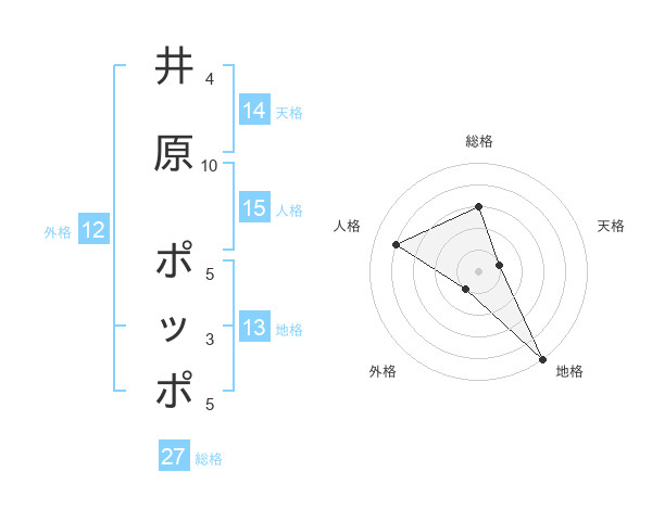 井原 ポッポさんの総格は27画の3点!