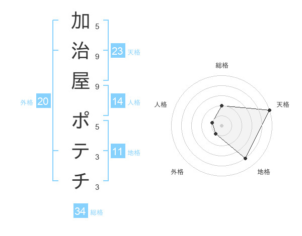 加治屋 ポテチさんを姓名の画数から五運を鑑定