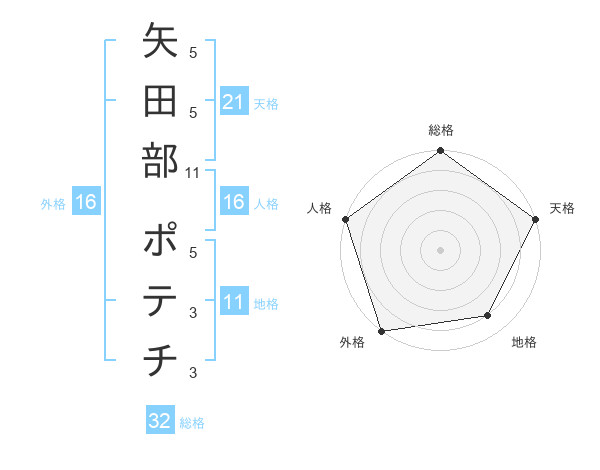 矢田部 ポテチさんの総格は32画の5点