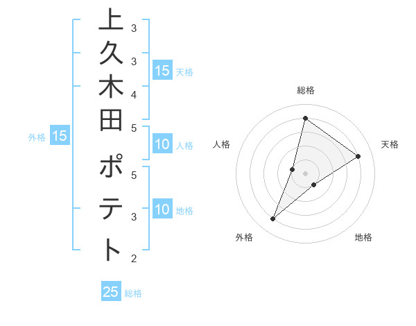 上久木田 ポテトさんを姓名の画数から五運を鑑定