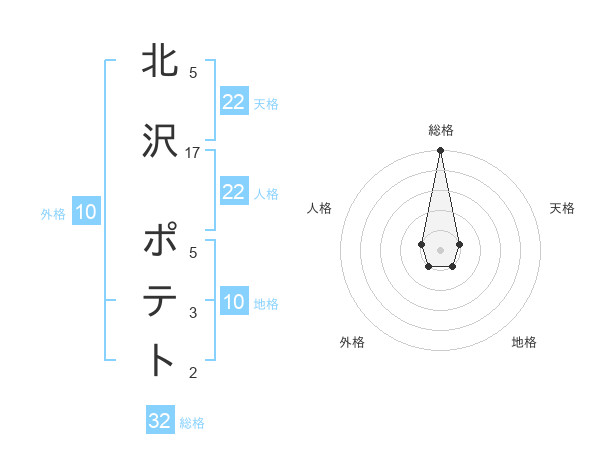 北沢 ポテトさんを姓名の画数から五運を鑑定