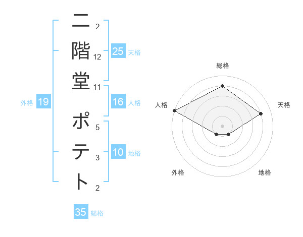 二階堂 ポテトさんの天格は25画の4点!