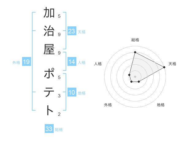 加治屋 ポテトさんの天格は23画の5点!
