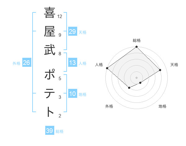 喜屋武 ポテトさんを姓名の画数から五運を鑑定