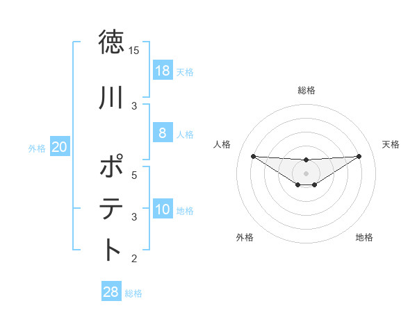 徳川 ポテトさんを姓名の画数から五運を鑑定