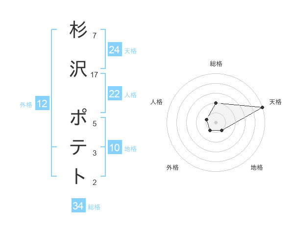 杉沢 ポテトさんを姓名の画数から五運を鑑定