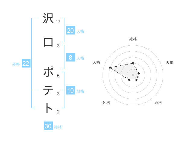 沢口 ポテトさんを姓名の画数から五運を鑑定