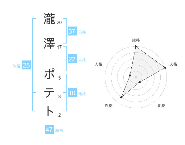 瀧澤 ポテトさんを姓名の画数から五運を鑑定