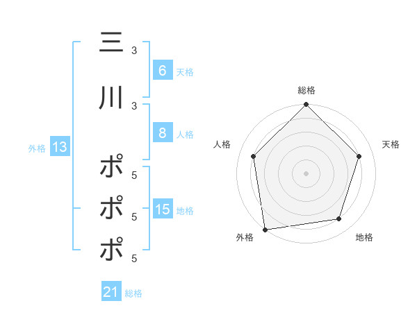 三川 ポポポさんの総格は21画の5点