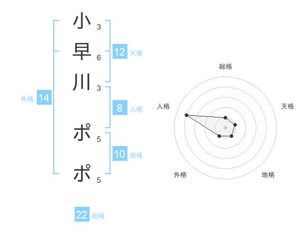 小早川 ポポさんの総格は22画の1点