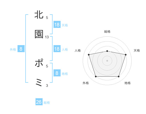 北園 ポミさんの天格は18画の4点