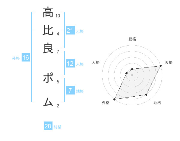 高比良 ポムさんの天格は21画の5点!