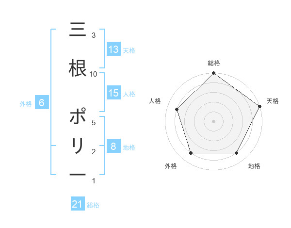三根 ポリーさんを姓名の画数から五運を鑑定