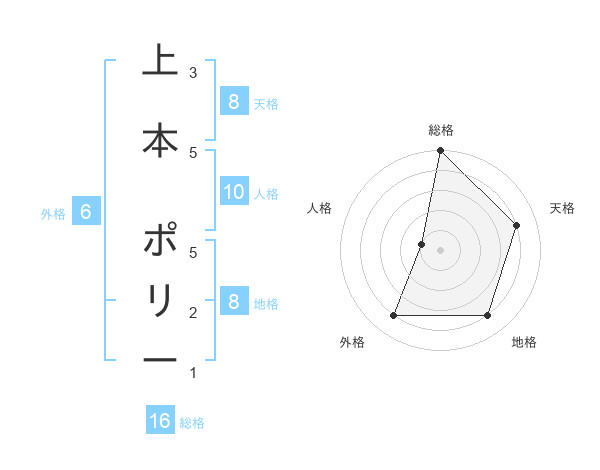 上本 ポリーさんを姓名の画数から五運を鑑定