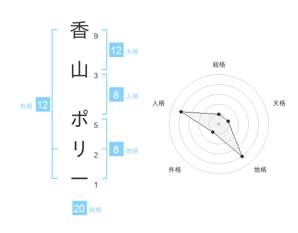 香山 ポリーさんを姓名の画数から五運を鑑定