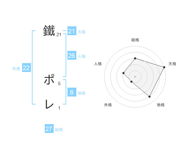 鐵 ポレさんの天格は21画の5点!