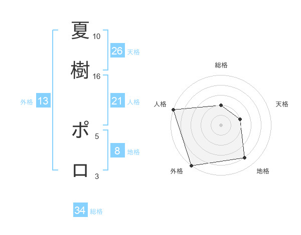 夏樹 ポロさんの総格は34画の2点!