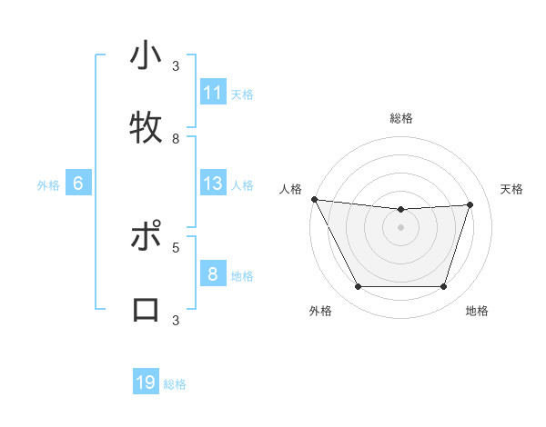 小牧 ポロさんの総格は19画の1点!