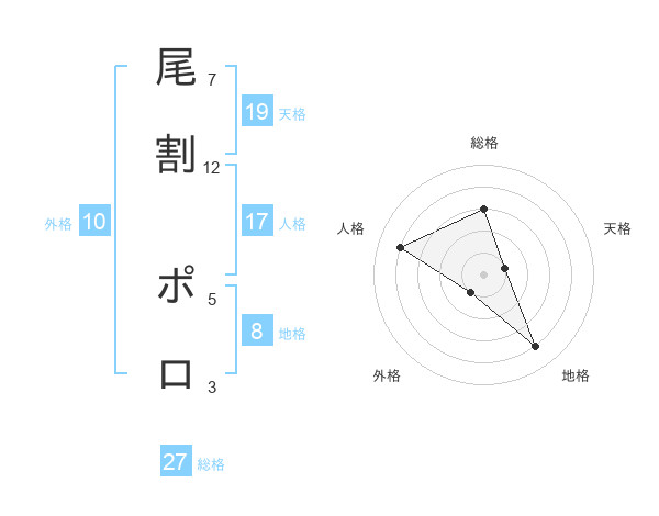 尾割 ポロさんを姓名の画数から五運を鑑定