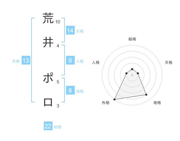 荒井 ポロさんを姓名の画数から五運を鑑定