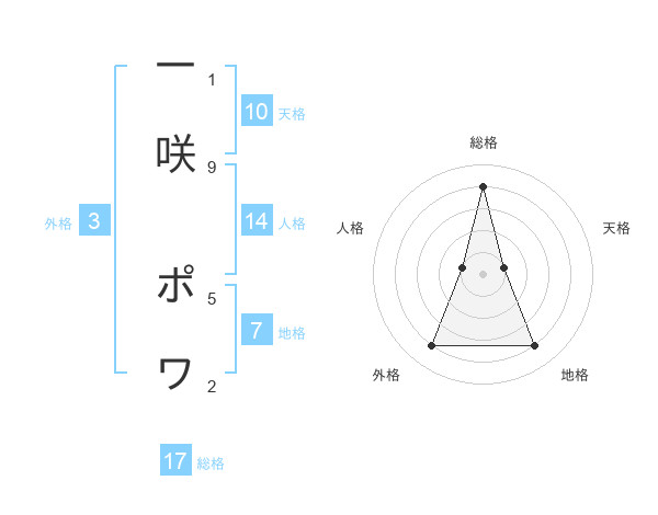 一咲 ポワさんの総格は17画の4点!