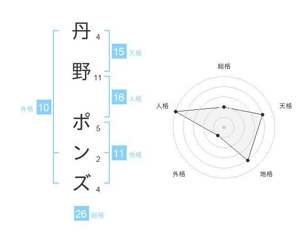 丹野 ポンズさんを姓名の画数から五運を鑑定