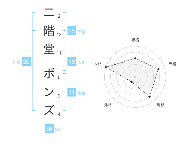 二階堂 ポンズさんを姓名の画数から五運を鑑定
