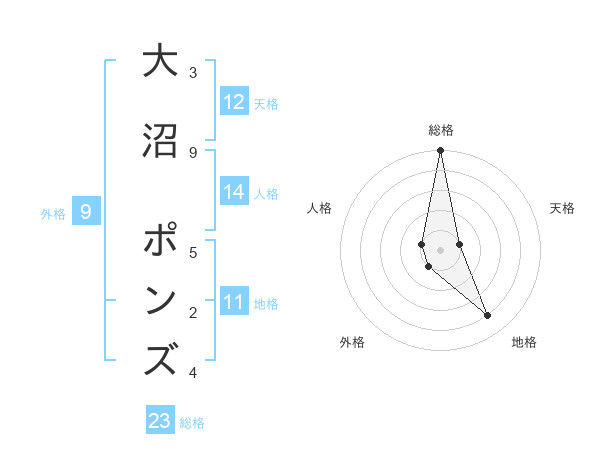 大沼 ポンズさんを姓名の画数から五運を鑑定