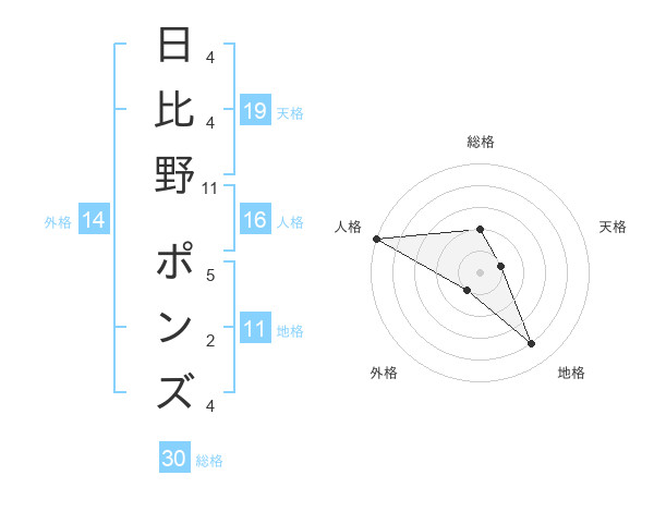日比野 ポンズさんを姓名の画数から五運を鑑定