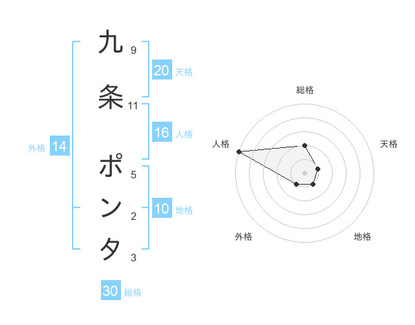 九条 ポンタさんを姓名の画数から五運を鑑定