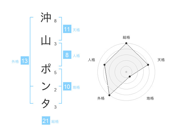 沖山 ポンタさんを姓名の画数から五運を鑑定