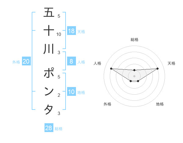 五十川 ポンタさんを姓名の画数から五運を鑑定