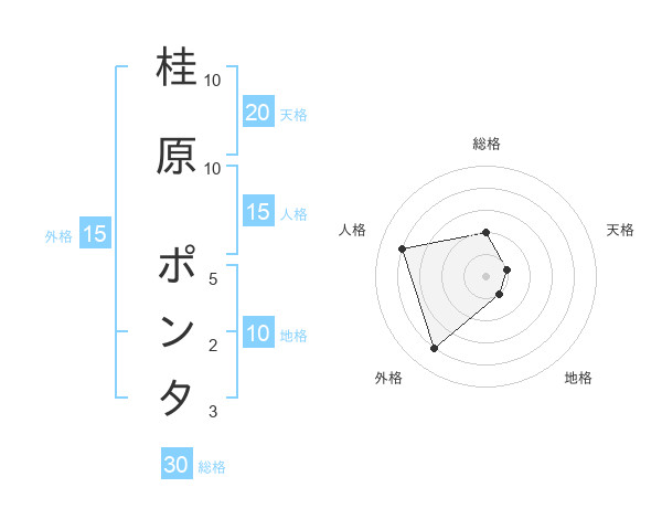 桂原 ポンタさんを姓名の画数から五運を鑑定