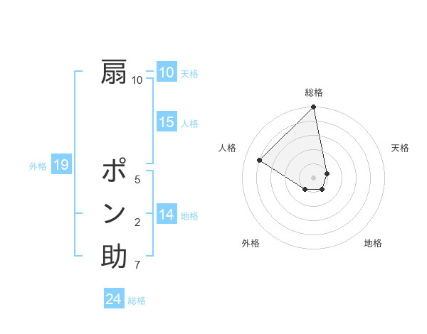 扇 ポン助さんを姓名の画数から五運を鑑定
