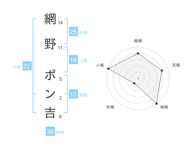 網野 ポン吉さんを姓名の画数から五運を鑑定