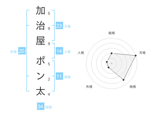 加治屋 ポン太さんを姓名の画数から五運を鑑定
