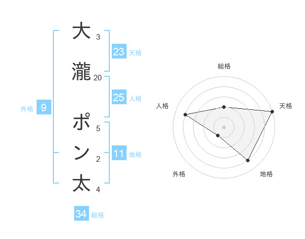 大瀧 ポン太さんを姓名の画数から五運を鑑定