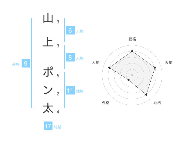 山上 ポン太さんの総格は17画の4点!