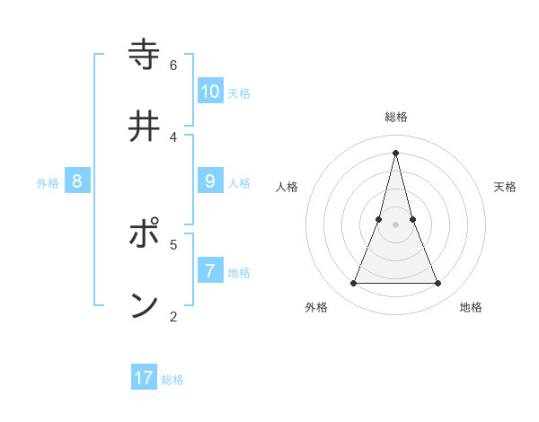 寺井 ポンさんの総格は17画の4点!