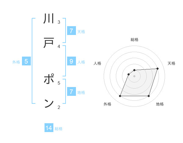 川戸 ポンさんを姓名の画数から五運を鑑定