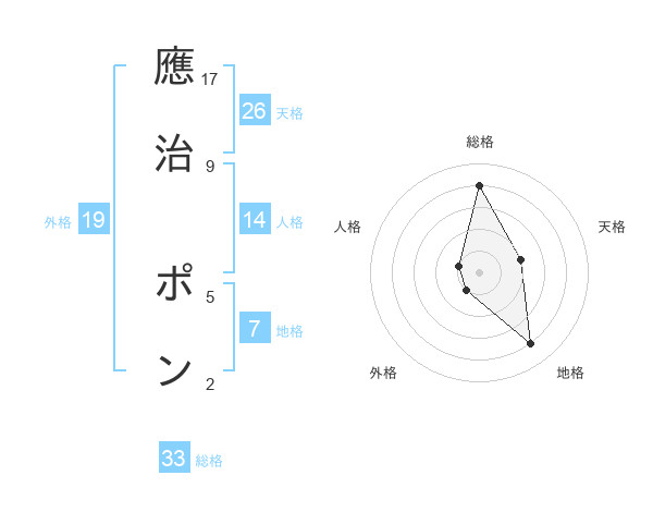 應治 ポンさんの総格は33画の4点!
