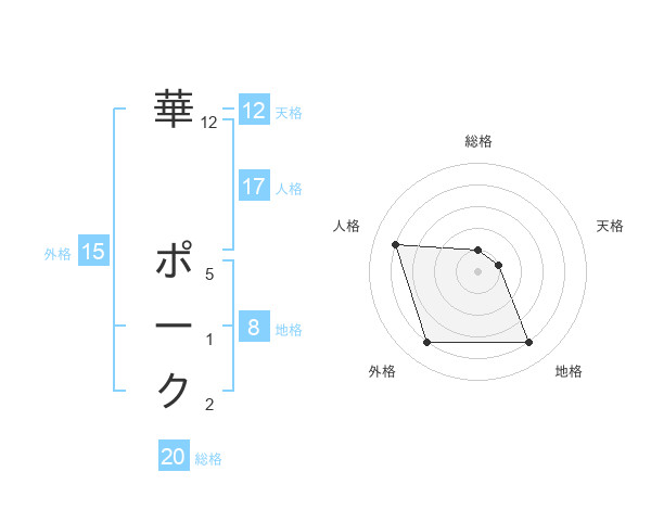 華 ポークさんの総格は20画の1点!