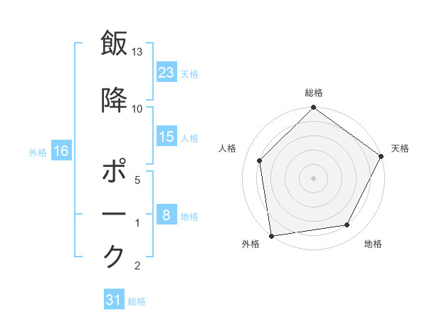 飯降 ポークさんを姓名の画数から五運を鑑定