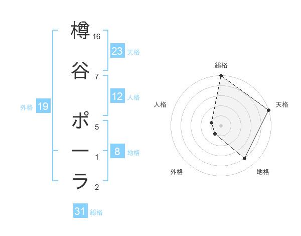 樽谷 ポーラさんの総格は31画の5点!