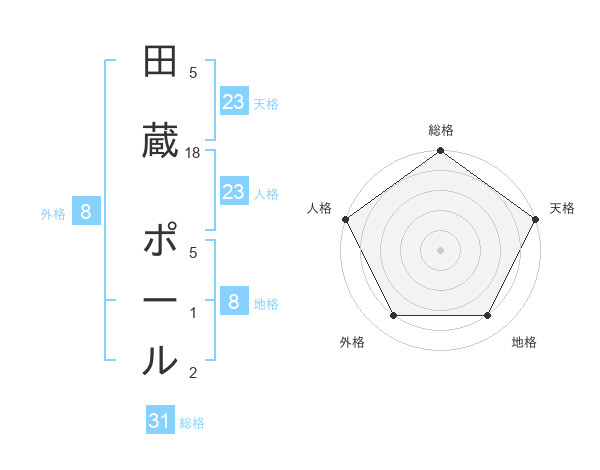 田蔵 ポールさんの総格は31画の5点!