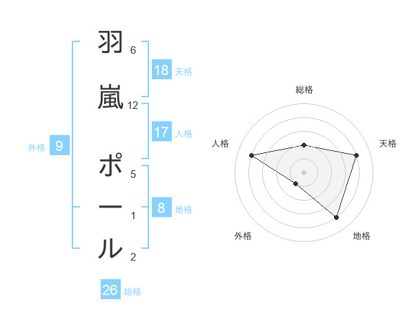 羽嵐 ポールさんの天格は18画の4点!