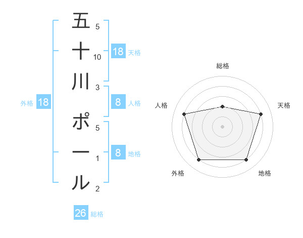 五十川 ポールさんを姓名の画数から五運を鑑定