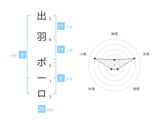 出羽 ポーロさんの総格は20画の1点!